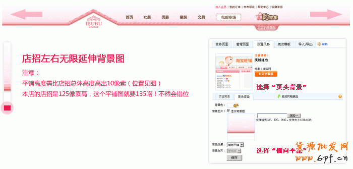 下圖就介紹了使用旺鋪設(shè)置“頁頭背景”的功能