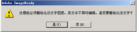 這時候,ImageReady會彈出一窗口,詢問是否將文字刪格化,先“是”。