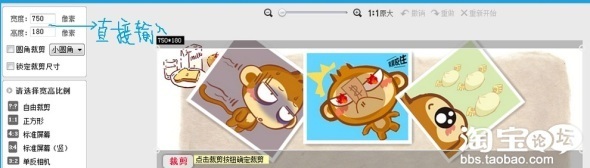 在右上角有尺寸的調(diào)整以及圖片的裁剪,大家可以根據(jù)自己需要的尺寸進(jìn)行調(diào)整,這里我們把圖片裁剪成750xp*180xp的大小,是比較適合寶貝詳情頁面窄版的大小,太寬占位太多,太長則不能全部顯示出來。