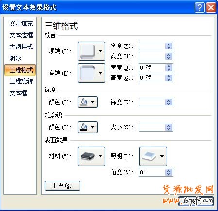 然后我們讓它更漂亮些,繼續(xù)在設(shè)置文本效果格式對話框中選擇三維格式
