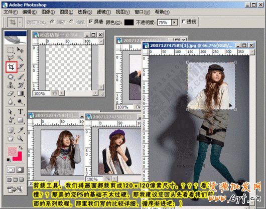 2.用PS剪裁工具,我們將第一步所準(zhǔn)備的圖片都剪裁成120*120像素。