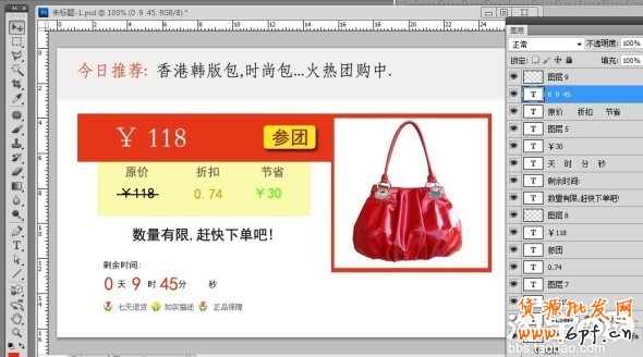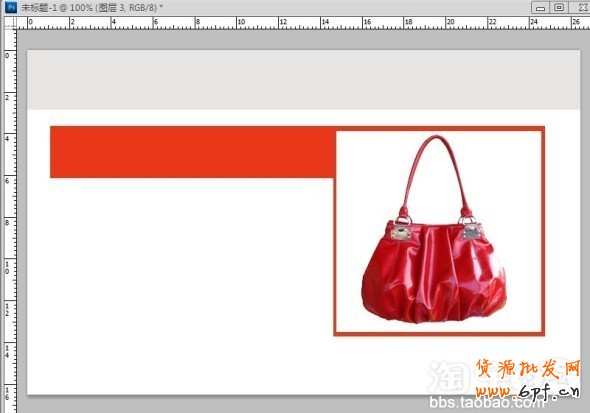 現(xiàn)在把你店鋪要參加淘寶限時(shí)折扣的寶貝主圖放進(jìn)來,可以用QQ截屏再ctrl+v就放進(jìn)來了,注意截屏的時(shí)候,要截成正方形哦,因?yàn)檫@個(gè)方框基本是正方形的,所以為了方便美觀,一定要仔細(xì)截好屏.然后用工具條的那個(gè)移動工具把我們的寶貝圖片放在正方形框內(nèi),可以用ctrl+t快捷鍵來調(diào)整大小記得按回車,調(diào)好了,看下圖,我在在百度里找了一個(gè)包包圖片入進(jìn)來了,你們看.