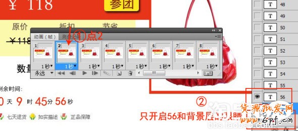 第二步 點(diǎn)擊幀2,并且只開啟背景層和T56兩個(gè)圖層的眼睛.