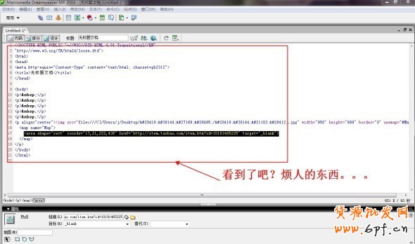 看到了嗎?這就是第一步中制作好的淘寶模板圖片,插入到Dreamweaver軟件界面的圖,到了這里,是不是覺得不難呢,其實真的不難,下面到了最為重點的步驟了,就是為圖片添加超鏈接。