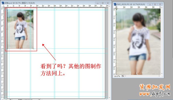 最后,把圖拉過去模板中,用自由變形工具合理縮放,大小合適就可以了,有多余的就刪除。看下圖,第一個圖完成了哦。