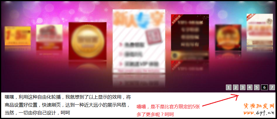 1——無限制輪播圖片張數(shù),如果設(shè)計(jì)得好,將利用輪播區(qū)塊最大力度的發(fā)揮出你寶貝的吸引力,吸引買家眼球!