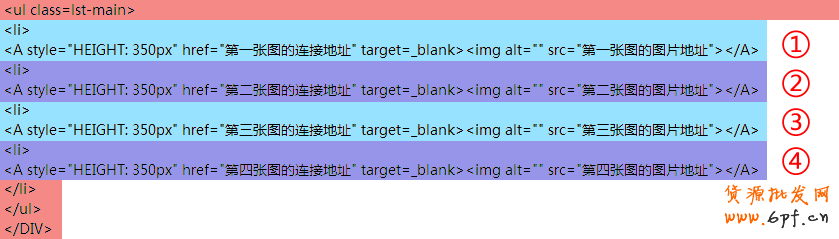 如何修改呢?——我們先只看第一個藍(lán)色塊(藍(lán)塊和紫塊都是一樣的,只是我用顏色區(qū)分,方便理解),它代表的是輪播時第一張圖的信息代碼