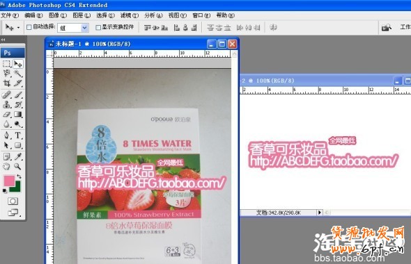 3.下面【文件】——【打開】,打開你的產品圖片,選中文字圖層,用移動工具移到產品圖片上,調整大小,水印會擋到產品圖案,影響效果。下面是關鍵。