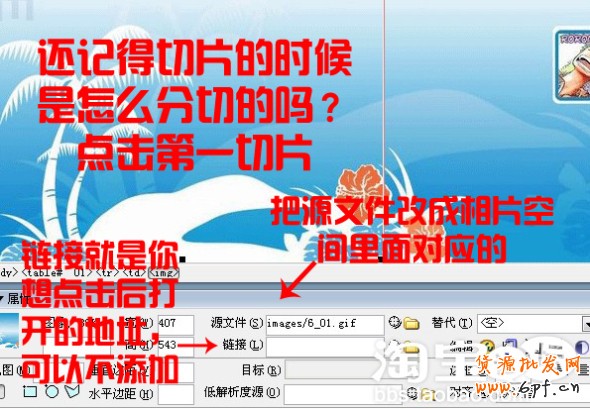 然后我們按照切片的位置來(lái)修改,把圖片的地址改成上傳之后的圖片地址,鏈接是超鏈接的地址,填加對(duì)應(yīng)的地址點(diǎn)擊圖片會(huì)打開,當(dāng)然沒(méi)有需要的部分也不用填加