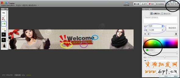 大家可以看到網站最上方廣告牌類目下面有各行各業的類目屬性可以供大家選擇,比如當前頁面的“秋季新品上市9折"大家如果喜歡的話可以直接點擊紅圈圈住的”開始制作",網頁就會轉入當前店招的修改選項!如下: