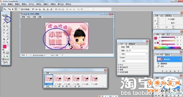 剩下的部分我們只需要利用adobe ImageReady 也就是photo shop 安裝時一起組合的軟件 來為這個動態圖片添加動態字體!