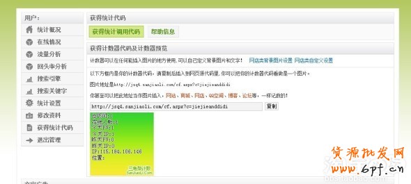 同上:我用的也是三角梨網店裝修素材里面免費提供的計數器:使用很簡單,只需要在網站上注冊一下: