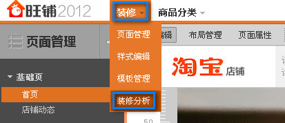 入口:賣家中心--店鋪管理--店鋪裝修--裝修--裝修分析