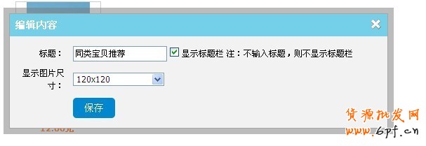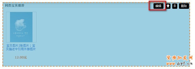 第三步:添加好同類寶貝推薦之后點(diǎn)擊【編輯】,進(jìn)入同類寶貝的編輯頁(yè)面,可以對(duì)標(biāo)題進(jìn)行修改,可以對(duì)展示的圖片大小進(jìn)行設(shè)置,如下圖所示: