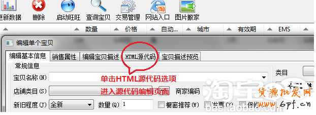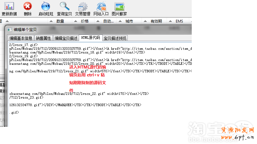 5: 粘貼好以后可以點(diǎn)擊右邊的寶貝描述預(yù)覽進(jìn)行查看此套源碼的原來的式樣。然后點(diǎn)擊編輯寶貝描述來進(jìn)行編輯修改。如下圖