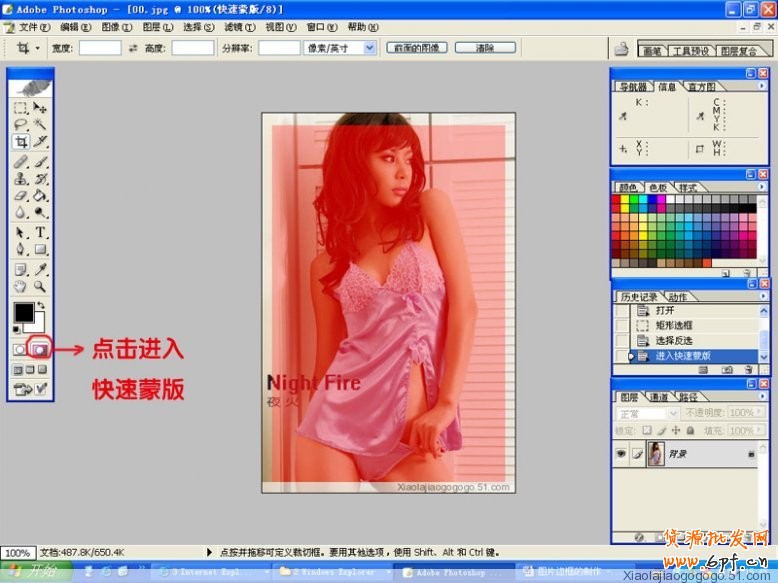 在圖片上畫一個比圖略小的選框。進入快速蒙版