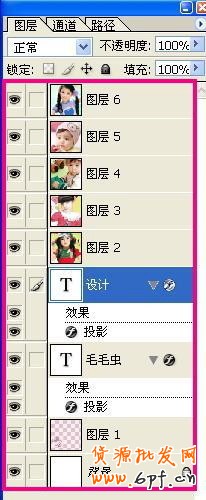 7、其它的圖片全部按照上面的程序來一一拖進去,調整好大小,請看圖層效果圖:(帶上文字圖層現在有好多個圖層了哦)