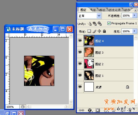 第四步:點擊小三角后選擇Make frames From Layers。就是把每層分布于帖。這里沒有英文的就是中文啦。“從圖層建立帖”這里大家意會吧,因為有的翻譯會不同的。而我是用8.0的漢化包翻9.0的。所以就有的中文有的英文的。
