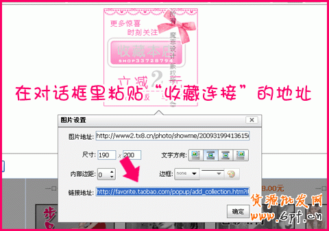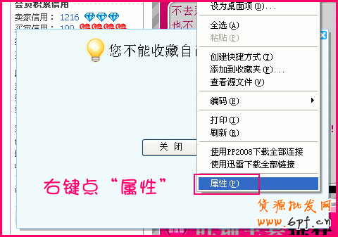 第二:準備收藏按鈕的連接。打開自己的店鋪,點“收藏本點鋪”,出現(xiàn)收藏設置頁面。在頁面空白處,點鼠標右鍵,點“屬性”,然后把屬性里的地址復制下來保存。