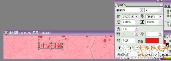 我們輸入 “ 時尚服裝” 四個字 , 如果對字體有詳細設置,我們可以打開字符窗口 窗口--字符 快捷鍵ctrl+T