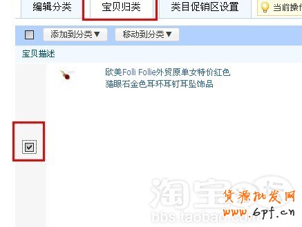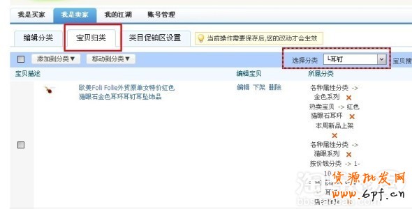 1、把頁面拉倒上面,選擇第二個“寶貝歸類”,選擇類別的地方選擇之前這個寶貝所歸屬的那一類,這里歸屬的是“耳釘”,見(圖13)