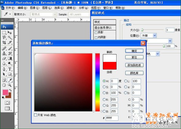 5.【窗口】——【圖層】——選中文字圖層。【添加圖層樣式】——【描邊】——選白色,點擊確定。設置參數,大小:3像素,位置:外部,混合模式:正常。點確定。