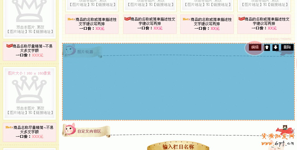 ⑤ 店鋪【保存】后,自動返回店鋪裝修首頁。這里就多了一個 圖片輪播模塊鳥~然后 上面的【編輯】按鈕,進入編輯小窗口(或者雙擊整個藍色區域)