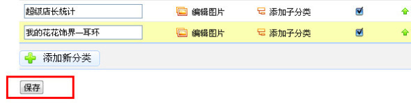 這樣才算大功告成,要是忘記保存之前的做的就全白搭了,一定要記住!最后,用這個方法添加完所有的分類后就可以到自己的店鋪首頁上,刷新一下,就可以看到自己的成果了!