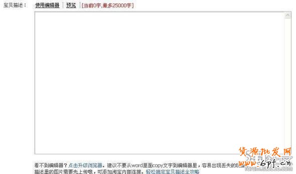 3、清空寶貝描述編輯器里的內(nèi)容(針對(duì)修改寶貝而言,如果是新發(fā)布寶貝就不存在清空了)。