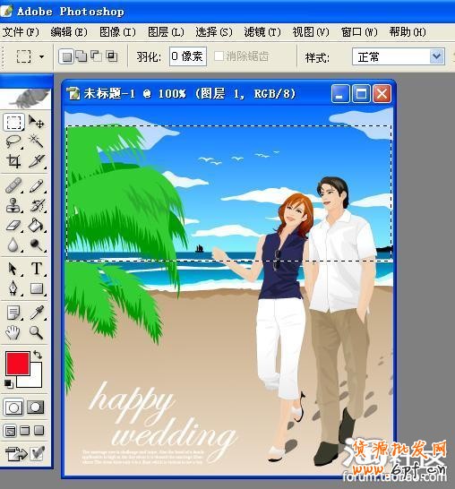 3、按“Ctrl+V”將在素材圖片的選中的部分粘貼到新建圖片中,做PS工具做適當調整。