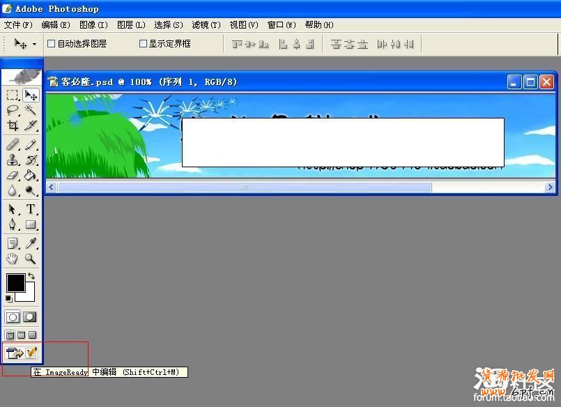 描繪完這一群海鷗之后,就該讓它們飛起來了。在PS中點“在ImageReady中編輯”按鈕,如下圖所示紅框位置。