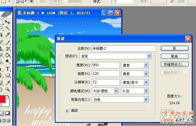 2、在PS中新建一個寬度為950像素,高度為120像素,分辨率為72像素/英寸的新圖片。