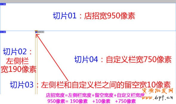 首先我們要在PS里用切片工具設置出店招、左側欄和右側自定義欄的尺寸: