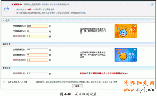 顧客根據(jù)不同的交易金額和交易筆數(shù),享受相應(yīng)的會(huì)員優(yōu)惠折扣,在交易金額和交易筆數(shù)里,只要顧客滿(mǎn)足其中一條,就能享受對(duì)應(yīng)的優(yōu)惠折扣,這也是培養(yǎng)老顧客和增加店鋪吸引力的有效方法。如圖4-40所示。