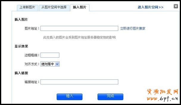 如果您沒有網絡圖片地址,可以直接從本地電腦或是圖片空間中選擇上傳,點擊“插入圖片”后再點擊“完成”便顯示該圖片,見下圖: