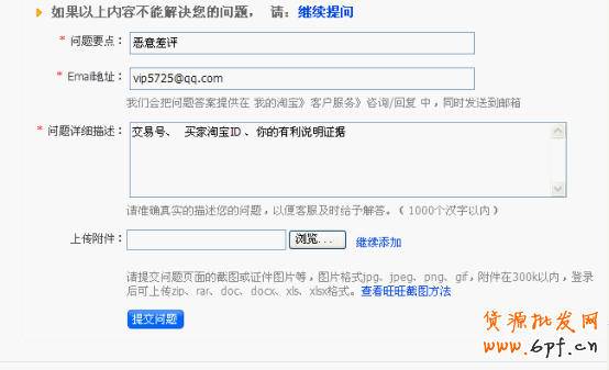點擊:提交問題,一般48-72小時之內客服就幫你會處理好了。百試不爽,注意一點,請注明問題原因,方便客服判斷,此方法很有效的,因為一般賣家不會去投訴惡意差評,所以忽略了最佳時機,我們要捉緊時間去申訴,越早成功率越高,只要不是貨品有問題或者欺騙消費者,差評一般可以修改的,大家把證據(jù)收集齊全,來回不斷的試,是一定能刪的,工作室一直在用次方法為賣家申訴,成功率很高,否則刪中差評工作室也不會先刪除后付款呢,主要是捉住賣家懶的心理,覺得很麻煩的心理,所以錢很容易讓工作室的就賺上了。