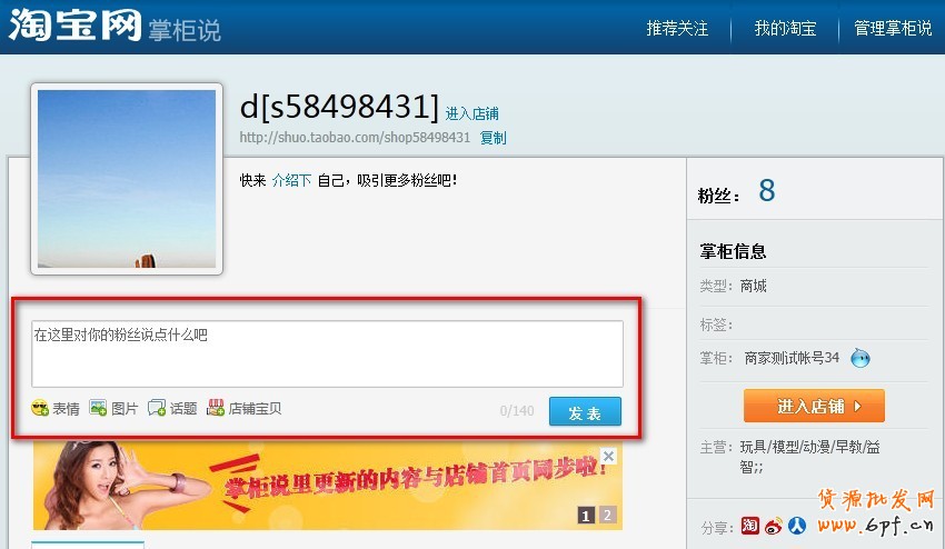 當我們店鋪進行活動的時候,可以在“掌柜說”中發布消息,吸引我們的粉絲,進入店鋪內查看活動詳情。