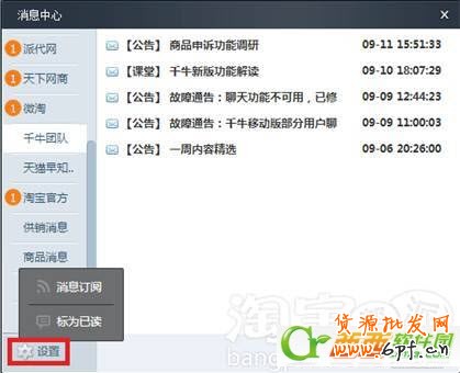 進入千牛PC版:消息中心--設置,即可根據自己的需要,自定義訂閱交易、退款、商品的系統消息和資訊類信息。
