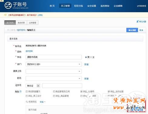 2、主賬號登陸子賬號后臺—員工管理—補充權限,授權使用千牛插件。
