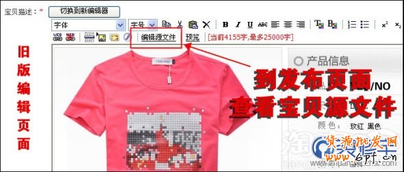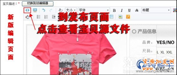 步驟四:打開發布寶貝頁面,查看寶貝源文件。