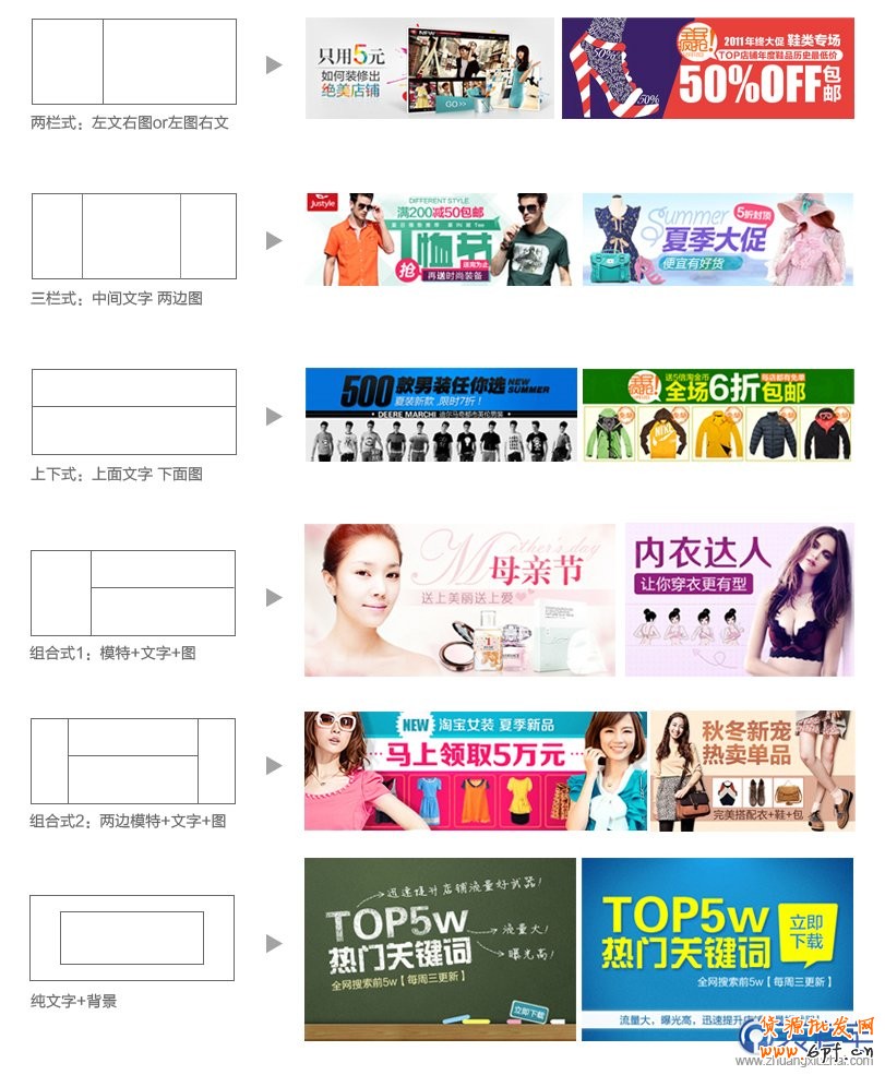 然后是排版,所謂排版,即將文字、圖片、圖形等可視化信息元素在版面布局上調整位置、大小,使版面達到美觀的視覺效果。之前在網上看到過一篇關于ppt排版六原則(對齊,聚攏,重復,對比,強調,留白)的文章,我覺得這個在banner的設計中也是同樣適用。這里我把這些原則稍微修改了下,更加適用于banner的設計。