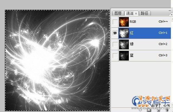 不能摳出來,怎么辦?用黑白選區啊。哪里找黑白選區?當然是通道!哪個黑白明顯,我們就用什么通道,ctrl+a,ctrl+c,復制通道