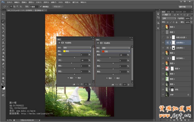 8、再次用可選顏色調(diào)整一下整個畫面的顏色,從而使整體的色調(diào)統(tǒng)一下。