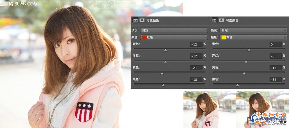 皮膚顏色沒啥特別的話(除了黑皮膚和古銅)基本可以用紅色和黃色控制,如果你打了色片尼瑪你要么就換思路要么就跳河吧。紅色和黃色里的黑色選項(xiàng)減少其實(shí)足夠讓皮膚變白,但為了保持皮膚的顏色自然度上面分別的青色洋紅黃色還是需要稍微調(diào)整一下的至于主要還是減黑色,減太多就自己看著辦吧。