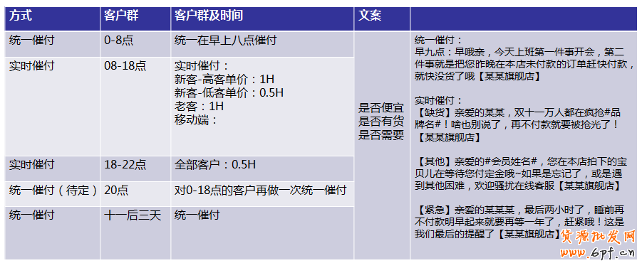 2、訂單催付:催付要做到細分,然后根據用戶的行為突出文案,客戶雙11不付款的原因會是什么?從原因著手在短信上面去解決用戶的疑慮,很多時候客戶關注的點更多是在是否便宜、是否有貨、是否需要這幾個點上面,所以抓住這幾個點入手,同時區分開新老客戶,在文案上面做優化,例如加入親愛的老客戶來讓自己和客戶辨別自己的身份,提升用戶的體驗。