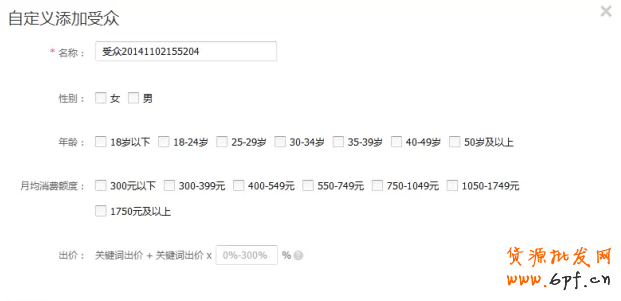 點擊自定義搜索人群,大家會看到5組數據,記住,這里只能選擇5組數據。