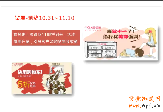 站內(nèi)傳播:直通車、鉆展、淘客,推廣三板斧,蓄水精準(zhǔn),預(yù)熱靠曝光,當(dāng)天靠搶。