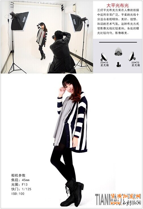 大平光布光在人像的拍攝中極為廣泛,這種布光方式使影像光線較為柔和,均勻,影像唯美。
