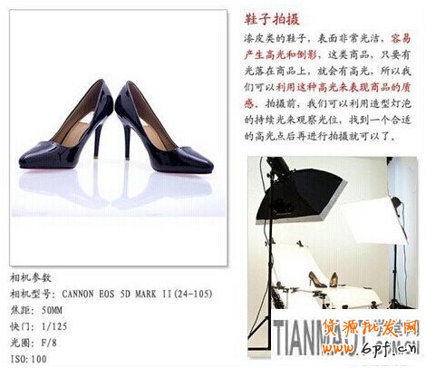 這是一個賣鞋子的拍攝技巧。拍攝這類產品的淘寶賣家有很多,都想拍出吸引人的圖片,但就是不知道怎么去利用光線。因此,要想拍出好的效果,在拍攝時就要注意找到一個高光點切入,這樣拍出來的鞋子通過高光來體現鞋子的品質。