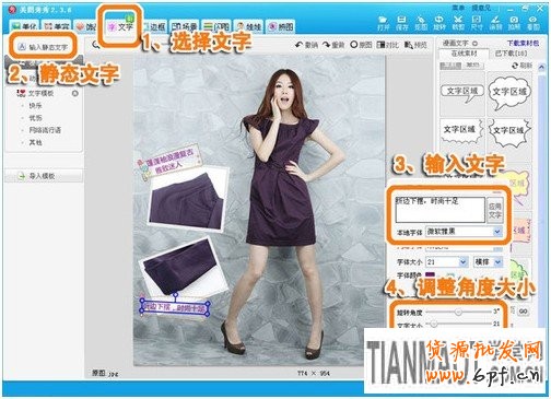 第四步:然后在會話氣泡中添加圖片細節圖的文字注釋。操作就選擇"文字/輸入靜態文字",在文本框輸入文字即可。當然也是需要調整文字的大小以及適當的角度了。